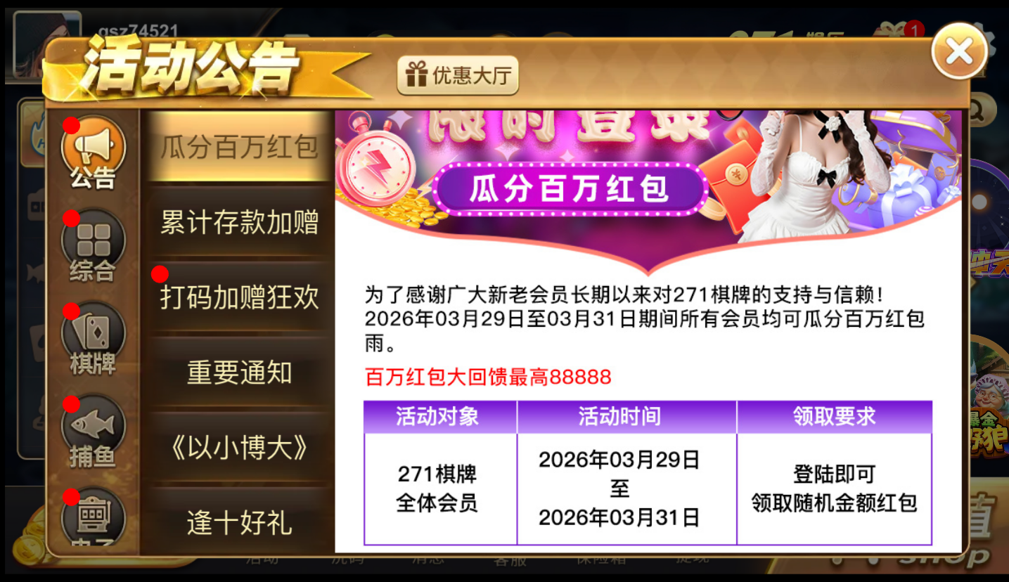 【271棋牌】—✅— 瓜分百万红包