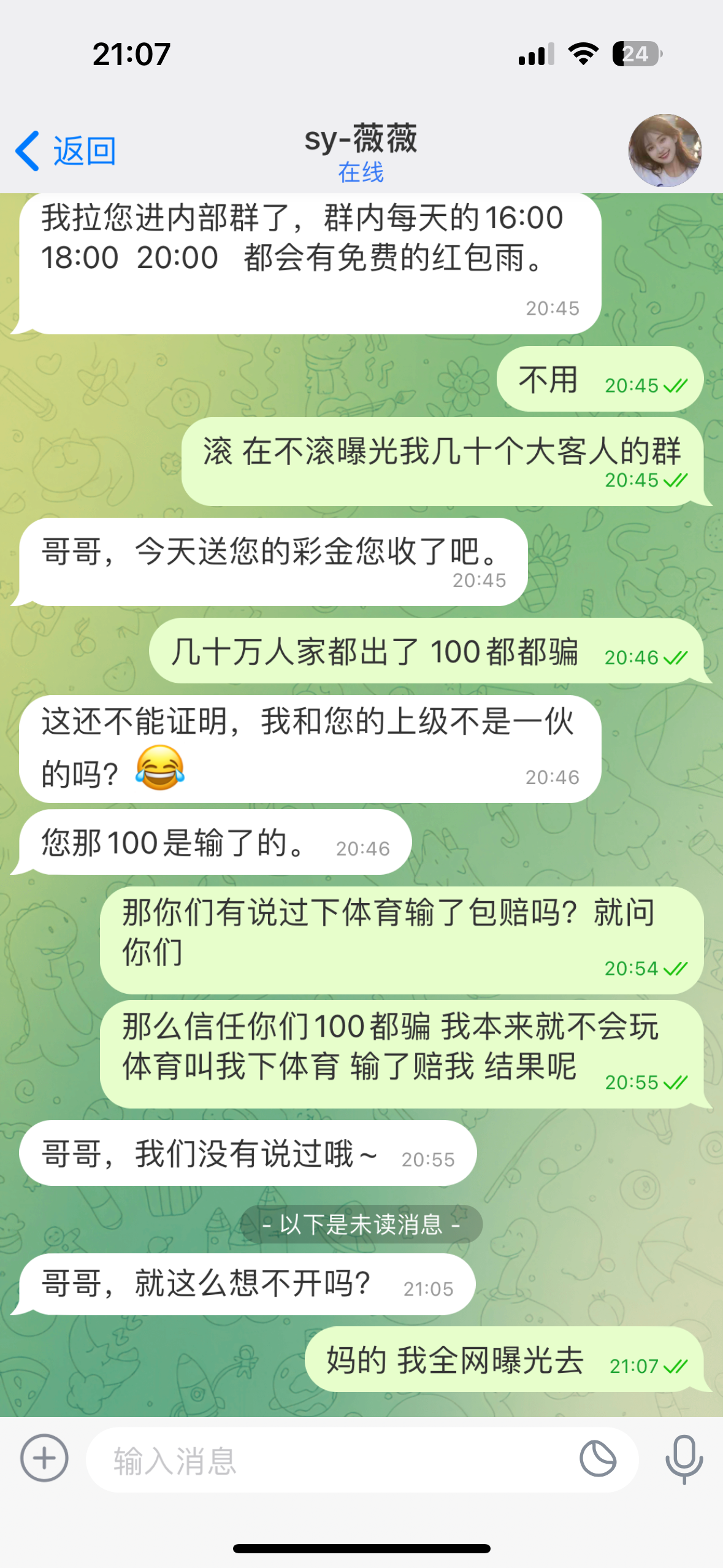 妈的,这傻逼平台,总有一些骗充值的,今天就被骗了一百充值,草