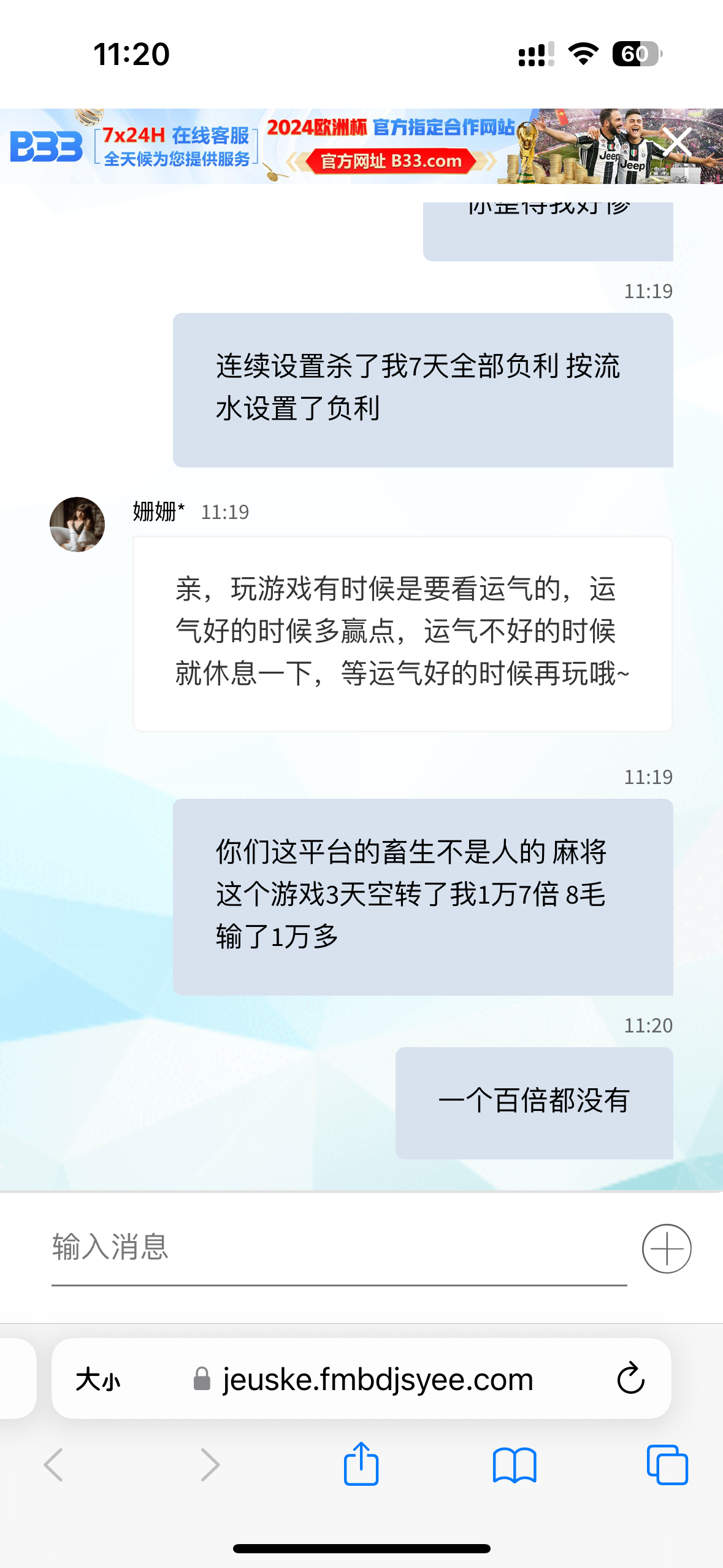 畜生黑台全部是跟那些主播的直播号直播合作黑钱 麻将玩了4天杀了我2万倍 8毛输了一万多 我朋友号也是全部按照1000流水设置杀100