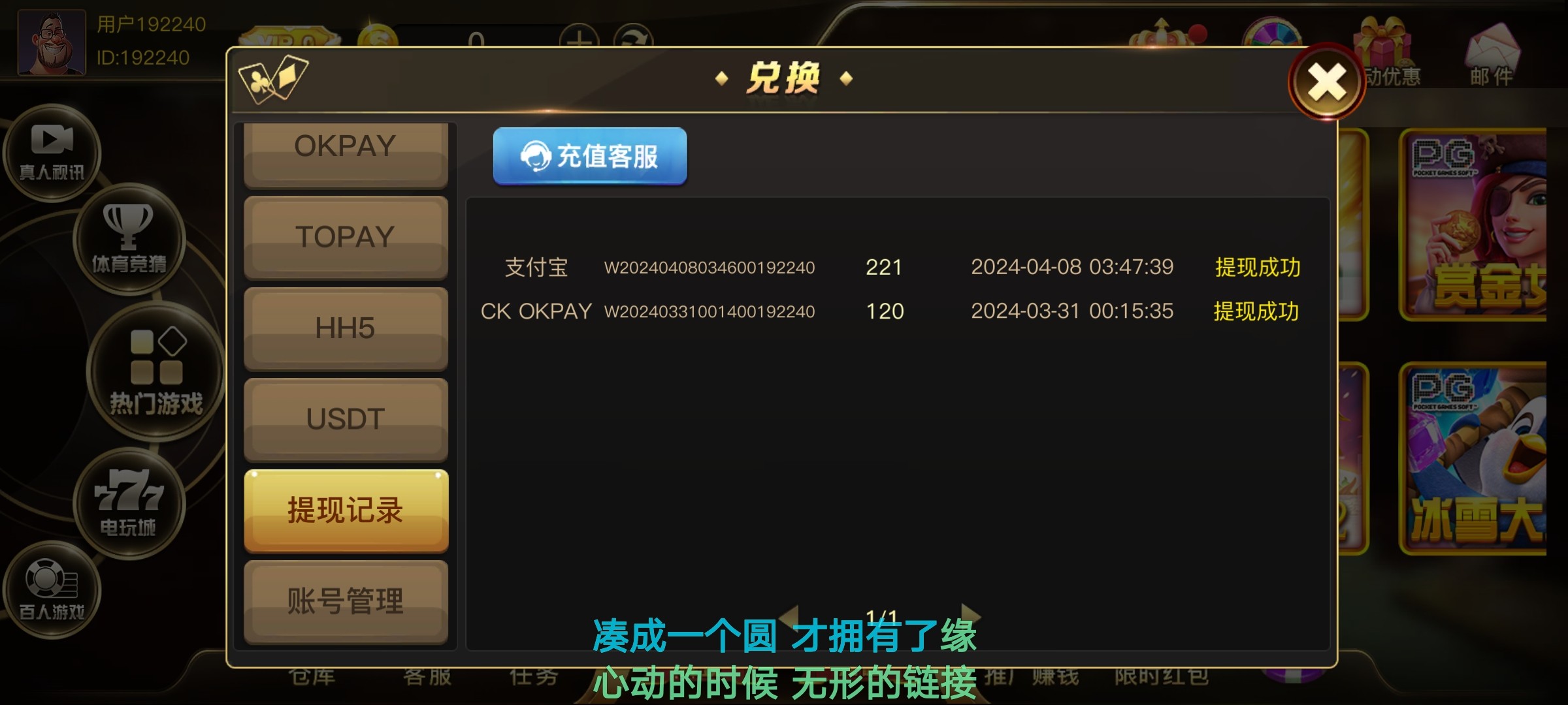 注册账号,绑定银行卡/支付宝联系在线客服让你添加专员POP发ID给她申请,打满105提现,亲测到账6彩金,之前出过100多后来打电话送了18,出款自测!
